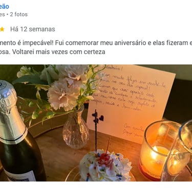 Descobri esse espaço novo e fiquei impressionada com os cuidados, os detalhes super sutis, porém marcantes, logo em minha entrada, fez meus sentidos aguçarem, fui recebida com chás variados e bolachinhas, ambiente super aconchegante. Sobre a massagem foi simplesmente maravilhosa, renovaram minha energia. Valeu cada segundo, indico a todos. Sem contar no atendimento que foi impecável! Parabéns, muito sucesso a vocês.